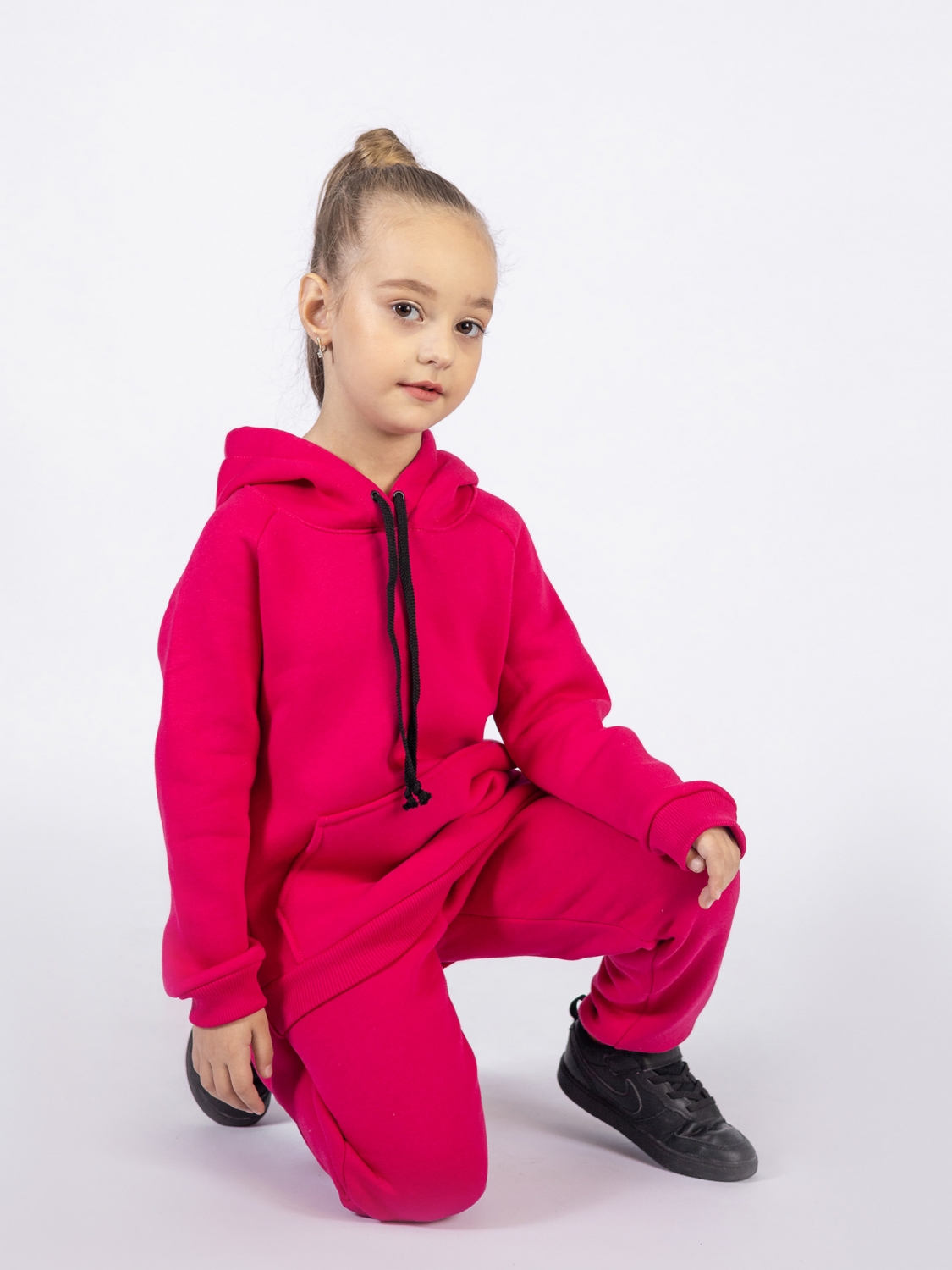 Теги: Детские костюмы оптом от производителя. 296-Ф. Свитшот с капюшоном + Штаны, хлопок 65%, 35% ПЭ, 3-х нитка (начес) фуксия 122,128,134,140 цена,отзывы официальный сайт "Стеша Казань"